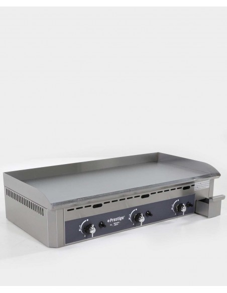 Équipement : 3 brûleurs 6 à 8 branches en étoile, 3 boutons de régulation avec position ralenti, bouton d’allumage Piezo, thermocouples de sécurité. Livré en butane propane avec pochette d’injecteurs GN.
