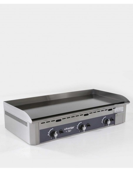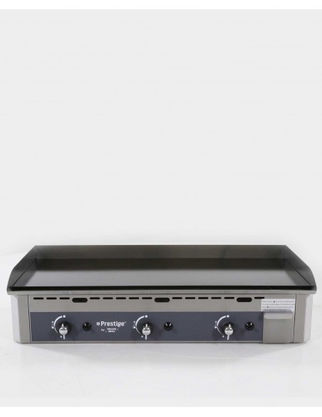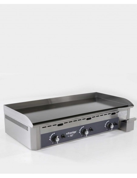 Équipement : 3 brûleurs 6 à 8 branches en étoile, 3 boutons de régulation avec position ralenti, bouton d’allumage Piezo, thermocouples de sécurité. Livré en butane propane avec pochette d’injecteurs GN.