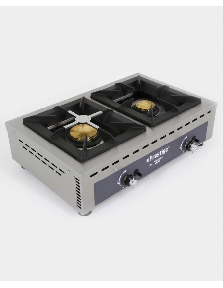 Équipement : 2 brûleurs, 2 boutons de régulation avec position ralenti, thermocouples de sécurité. Livré sans wok. Livré en butane/propane avec pochette d’injecteurs GN